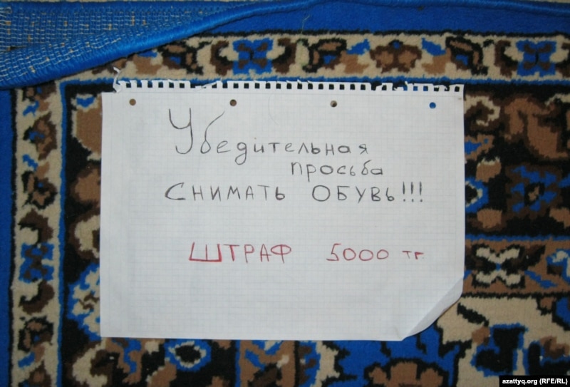 Назарбаев университеті жатақханасындағы "Аяқ киіміңізді шешіңіз" деген өтініш. Астана, 28 қыркүйек