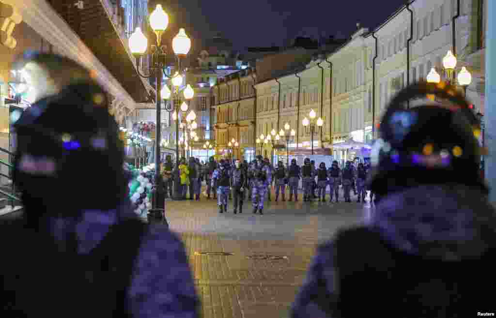 Мәскеудегі Арбат маңында тұрған күштік құрылым өкілдері.