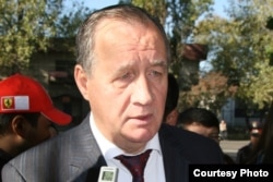 Алматы әкімінің орынбасары Виктор Долженков наразылық акциясы кезінде журналистерге түсініктеме беріп тұр. «Республика» газетіндегі сурет.