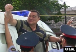 «Алма-Ата Инфо» газетінің бас редакторы Рамазан Есіргепов өзіне шыққан үкімді естуге бара жатыр. Тараз, 8 тамыз 2009 жыл.