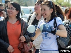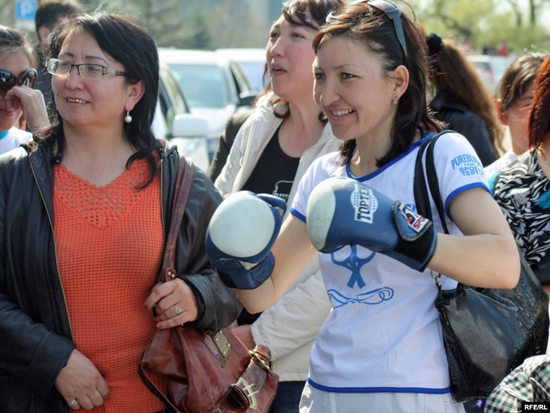 Көпшіліктің арасында былғары қолғап киіп жүргендері болды. Олар ақ жейдесіне «халық-доп» деп жазып алып, «халық» деген сөз жазылған доппен әкімшілік алдында "футбол ойнауды" көздепті.