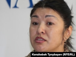 Кәсіпкер Қанағат Такеева «Қорғас» кеденіндегі заңсыз алымдар туралы мәлімдеме жасап отыр. Алматы, 24 қараша 2010 жыл.