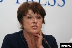 Бұрынғы парламент депутаты Татьяна Квятковская тұтқындалған топ-бизнесмен Мұхтар Жәкішевке айып тағып отыр. Алматы, 12 маусым 2009 жыл.