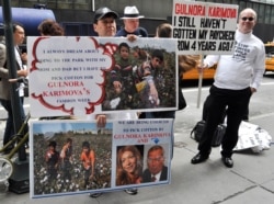 Нью-Йорктегі наразылық шарасына қатысу үшін АҚШ-тың Аризона штатынан келген Юсуф Сабиров сегіз жасынан бастап Өзбекстандағы мақта алқаптарында жұмыс істегенін айтады.
